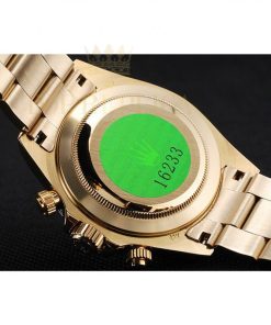 | Back | 18k yellow gold plated snap-in back with Rolex green authenticity sticker |