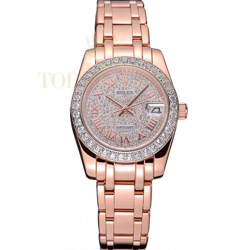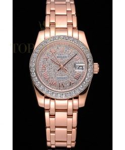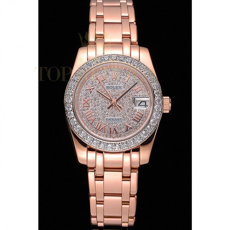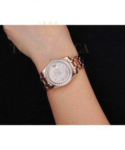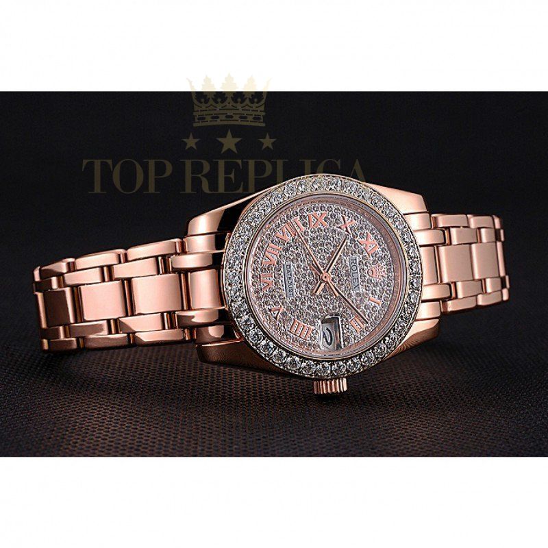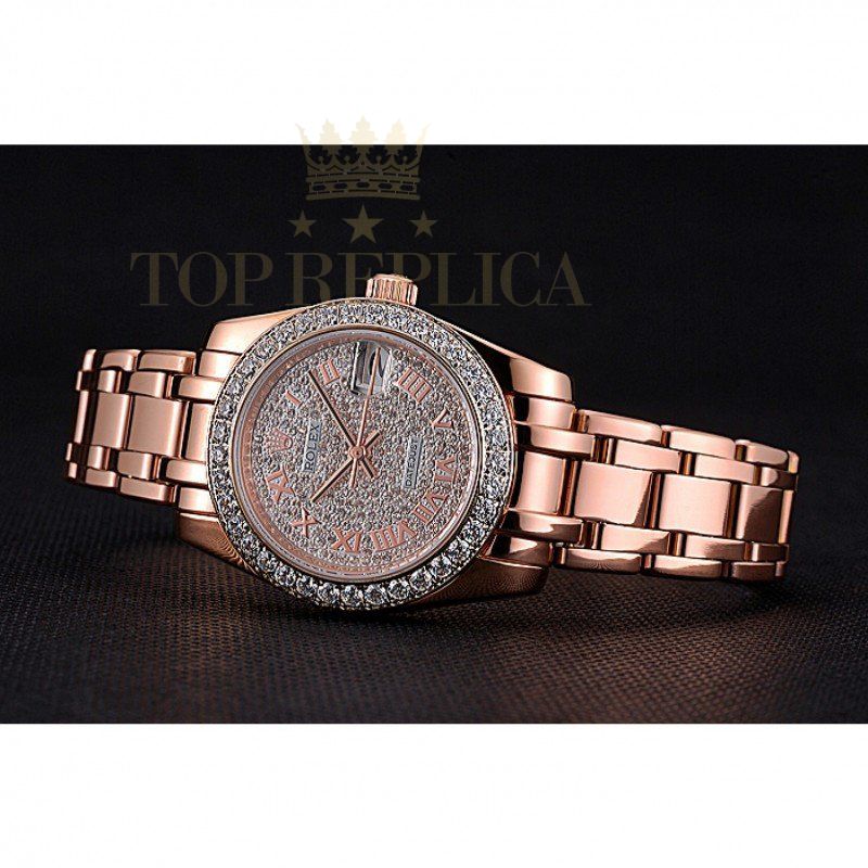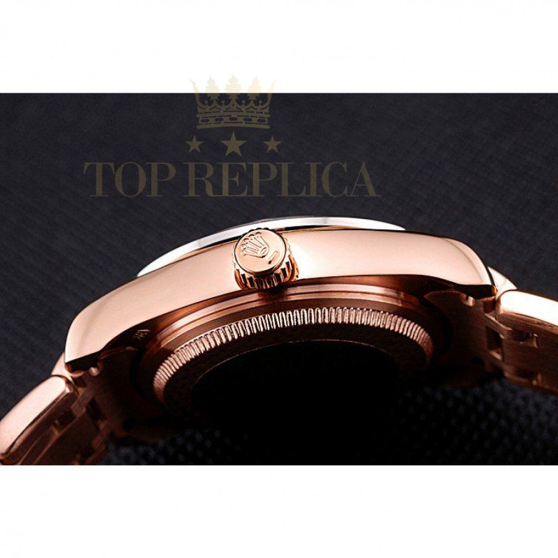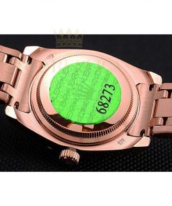 | Back | 18k rose-gold plated snap-in back with Rolex green hologram sticker |
