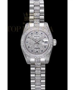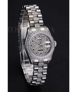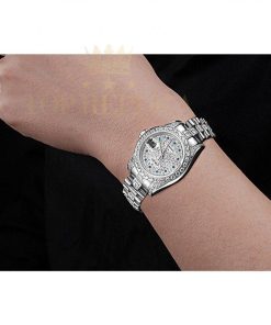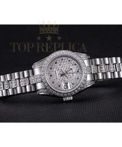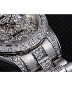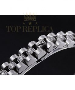| Bracelet | Diamond encrusted polished stainless steel link bracelet with cutwork Rolex logo deployment clasp |