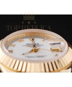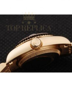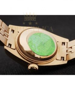 | Back | Push in 18K yellow gold back with green Rolex sticker and markings |