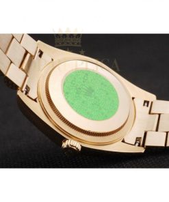| Back | Push in 18K yellow gold back with green Rolex sticker and markings |