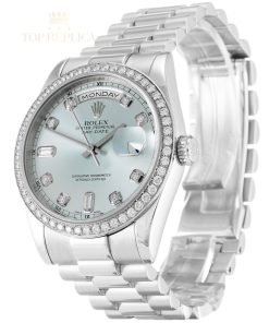 Rolex DayDate Stainless Steel Ribbed Bezel Silver Dial 41995