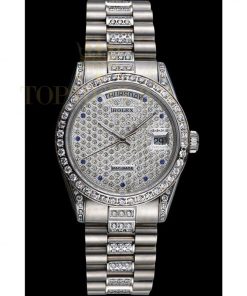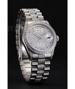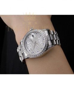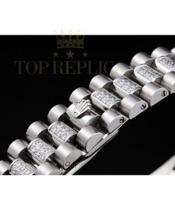 | Bracelet | Diamond encrusted polished stainless steel link bracelet with cutwork Rolex logo deployment clasp |