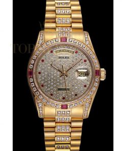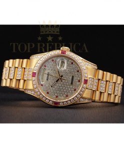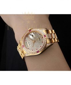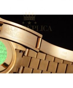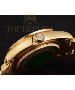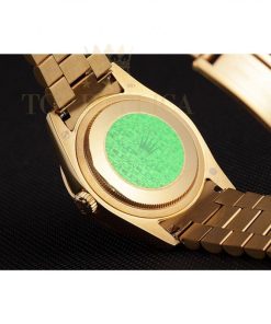 | Back | 18k yellow gold plated snap-in back with green Rolex logo hologram authenticity sticker |