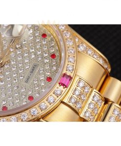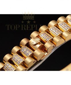 | Bracelet | Diamond encrusted 18k yellow gold plated link bracelet with cutwork Rolex logo deployment clasp |