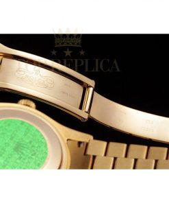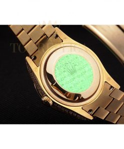 | Back | 18k yellow gold plated snap-in back with green Rolex logo hologram authenticity sticker |