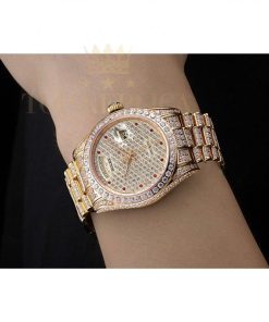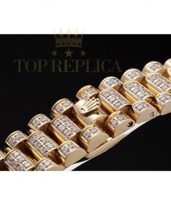 | Bracelet | Diamond encrusted 18k yellow gold plated link bracelet with cutwork Rolex logo deployment clasp |