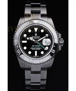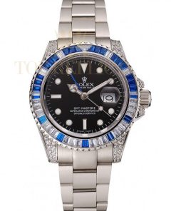 Rolex GMT Master II Black Dial Stone Set Bezel Stainless Steel Case And Bracelet 1453747
