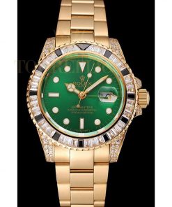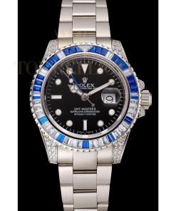 Rolex GMT Master II Black Dial Stone Set Bezel Stainless Steel Case And Bracelet 1453747