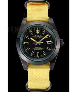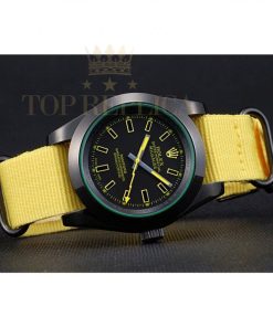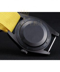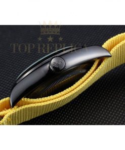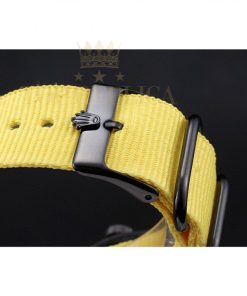 | Bracelet | Yellow nylon strap with cutwork Rolex logo ion-plated hook-buckle clasp |