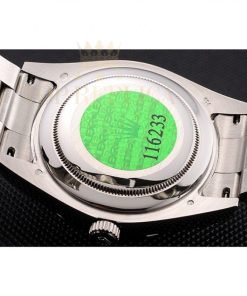 | Back | Polished stainless steel snap-in back with Rolex green authenticity sticker |