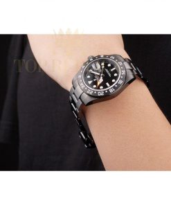 | Bezel | Black ceramic cutwork bezel with silver Arabic numeral 24-hour markers |