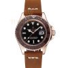 Rolex Yacht Master Black Dial Brown Bezel Rose Gold Case Brown Leather Bracelet 1453860