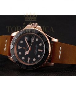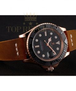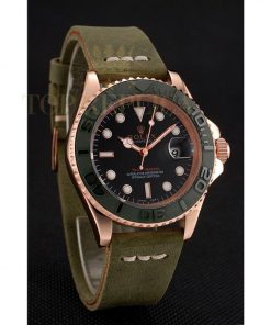 Rolex Yacht Master Black Dial Green Bezel Rose Gold Case Green Leather Bracelet 1453862